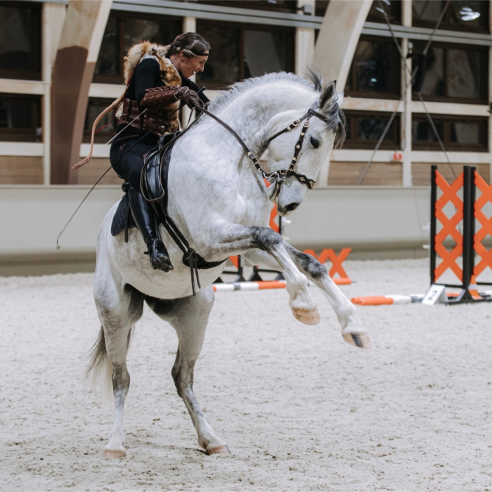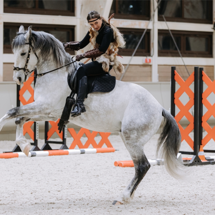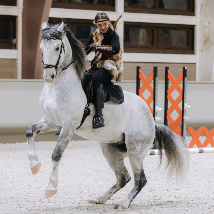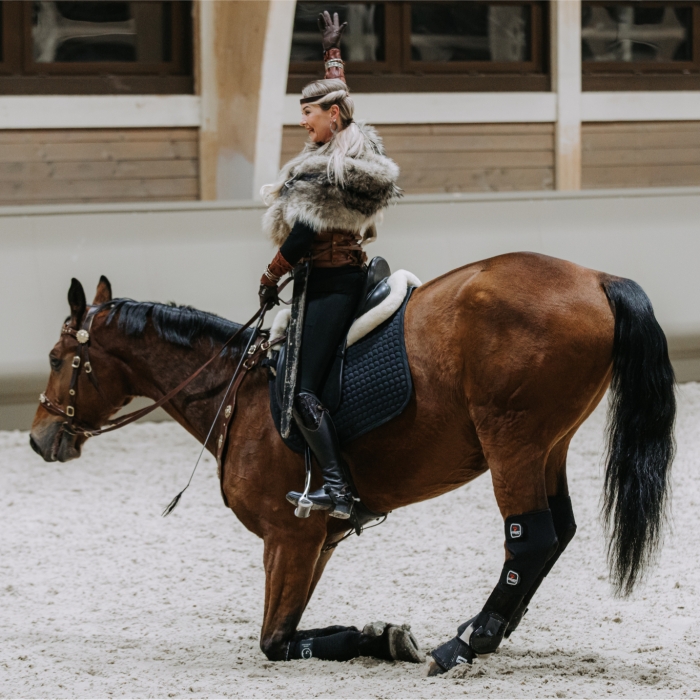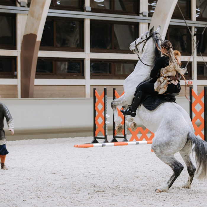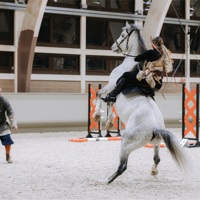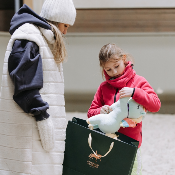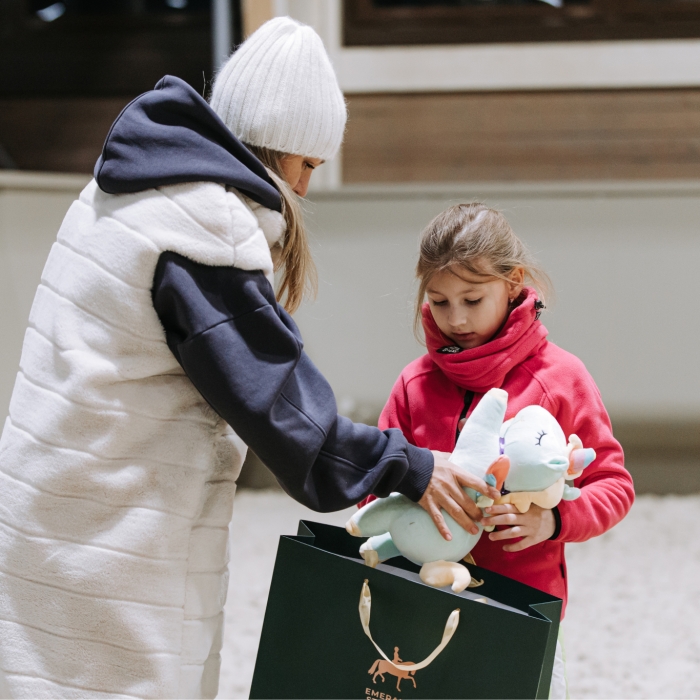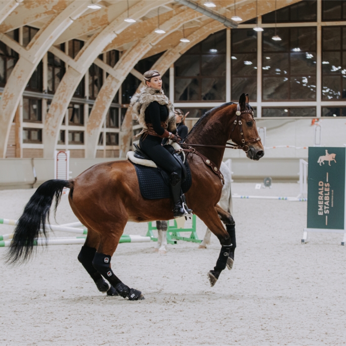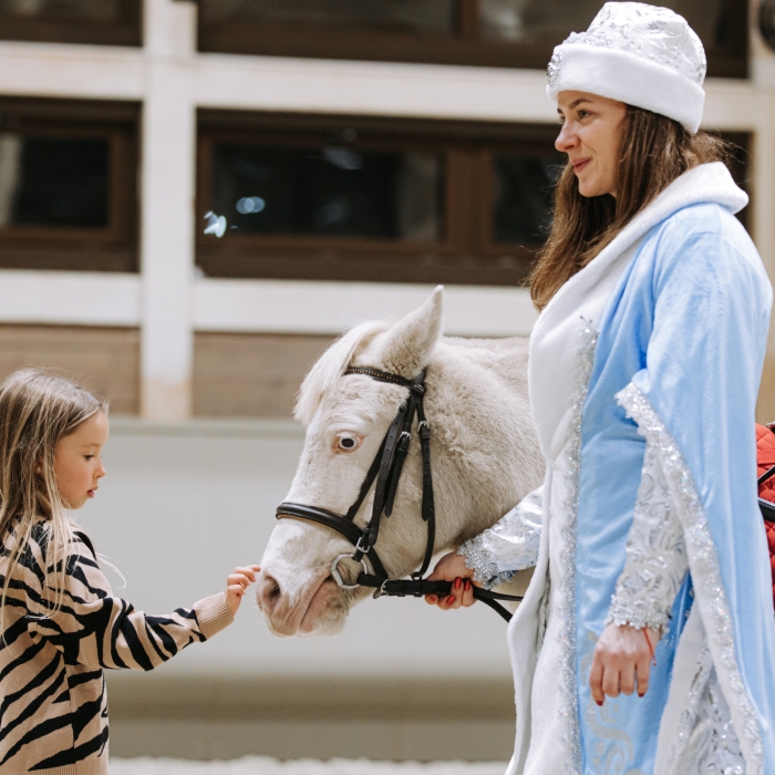 Сверкающий снег на лошадиных гривах, изящное выступление всадников и весёлая программа оставили чудесное ощущение зимнего праздника в Emerald Stables.