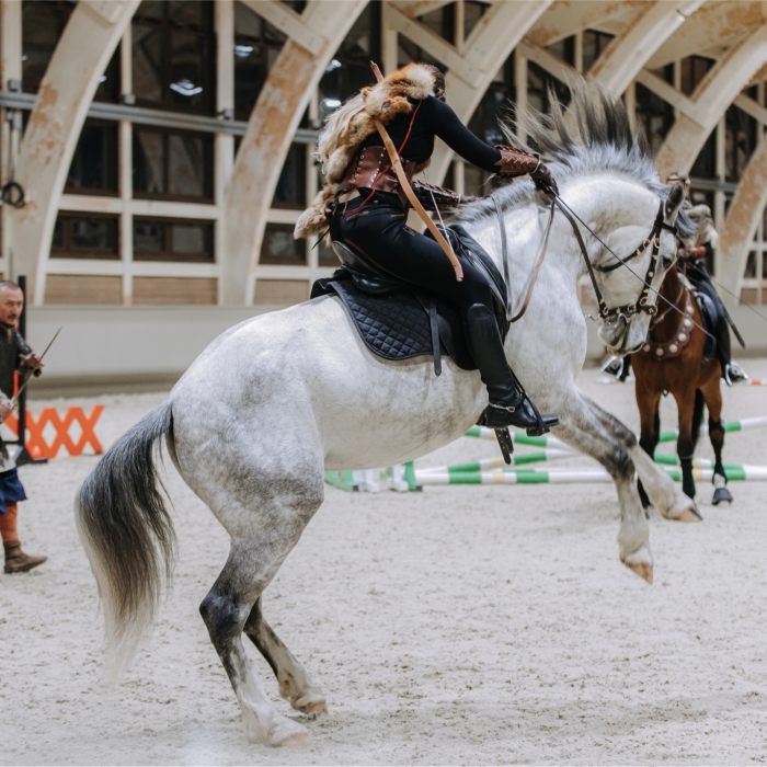 Гвоздём программы стало торжественное выступление спортсменов и учеников Emerald Stables. В финале был исполнен высотный маршрут в исполнении нашей юной звезды – перспективной спортсменки Дианы Корниловой.