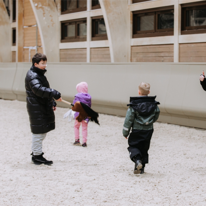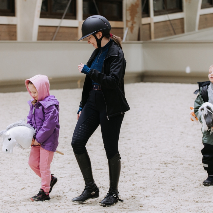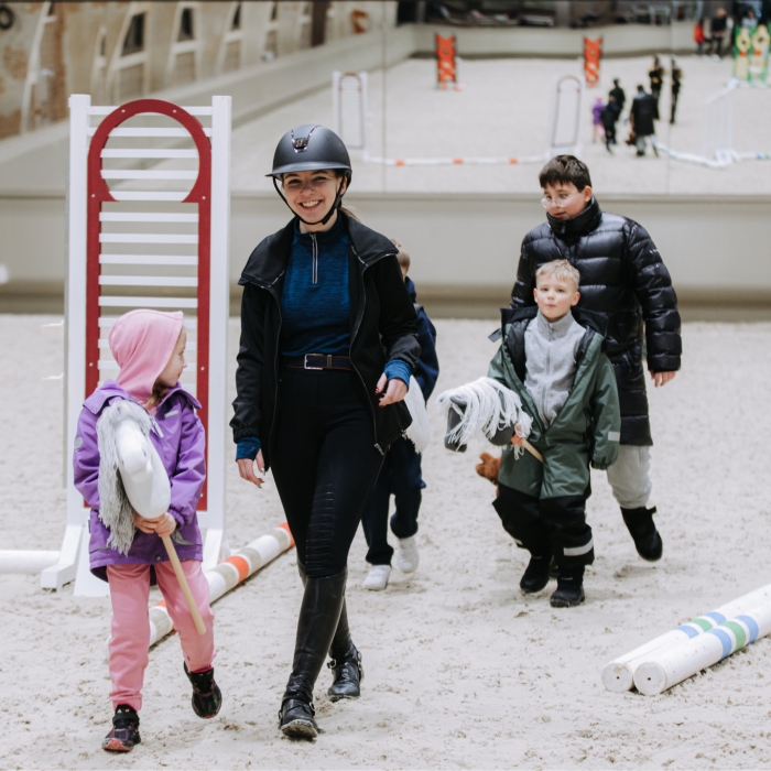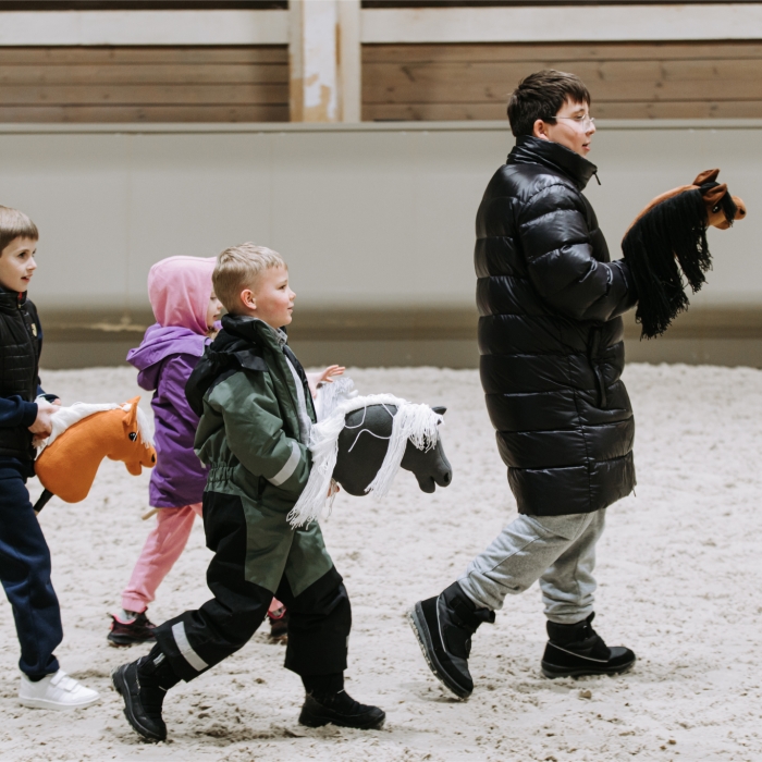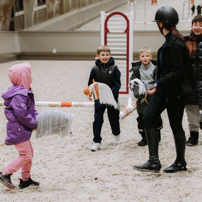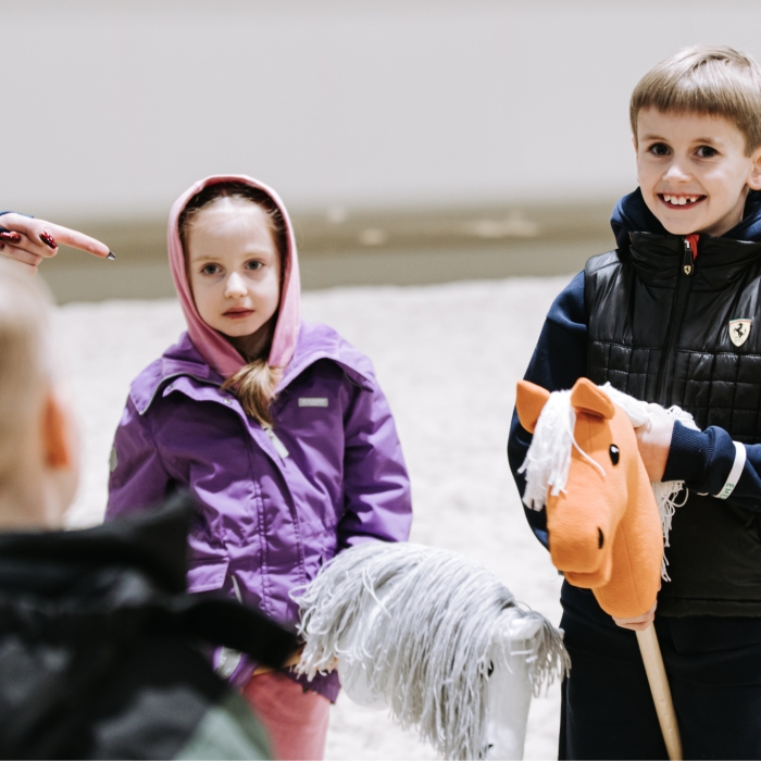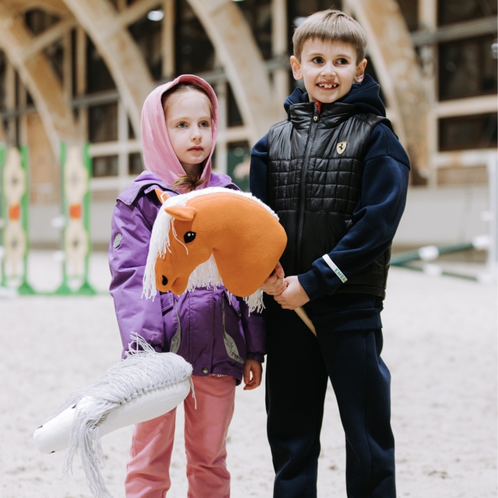Юные гости с азартом участвовали в квесте на тему конного спорта, увлекательных мастер-классах и уморительных соревнованиях по хоббихорсингу.